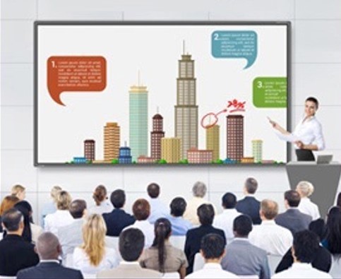 As telas interativas da Tacteasy possui uma variedade de recursos para facilitar o ensino ou demonstração de uma apresentação em uma reunião de negócios.